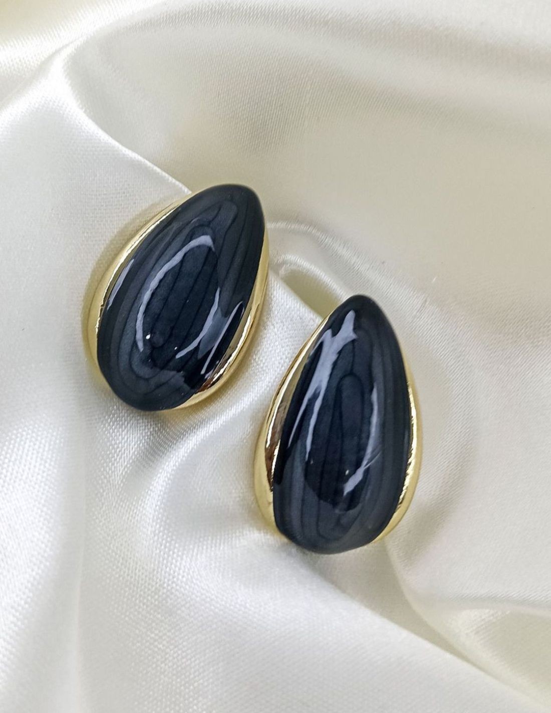 Diseño gota en azul intenso con borde dorado.