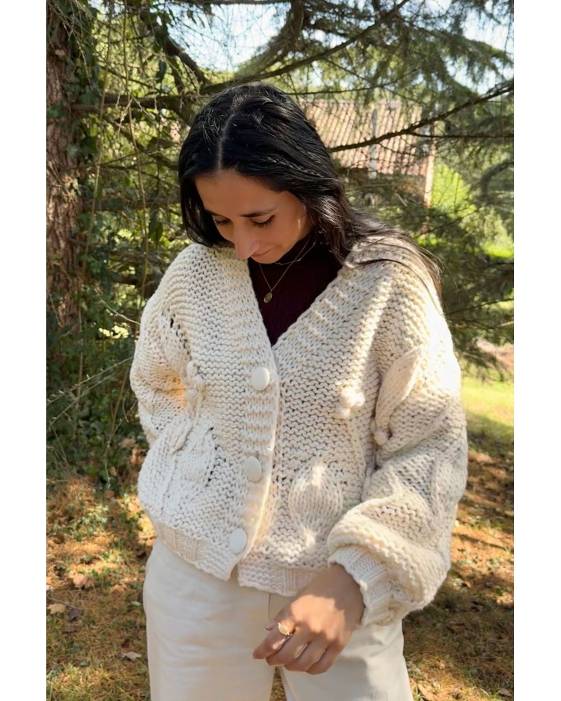 Cierre botones. Cuello pico. Mangas abullonadas. Detalles florales. Talla única.