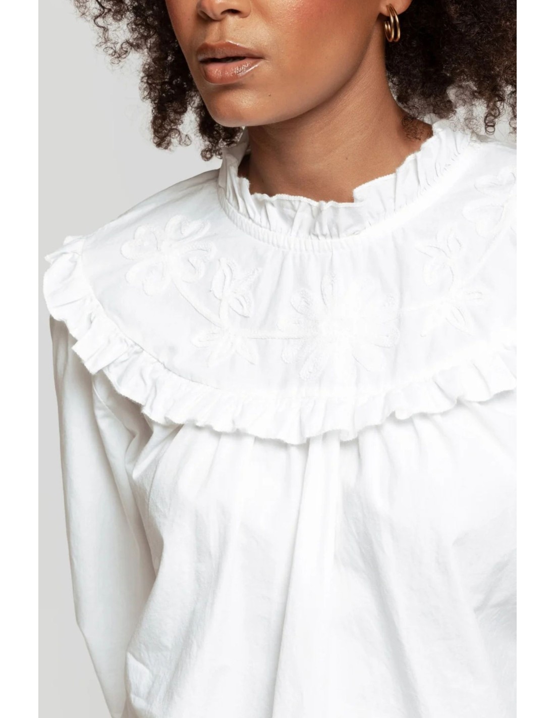 Tejido de algodón. Diseño fluido. Diseño recto. Cuello redondo. Manga larga. Puño abotonado. Abotonado en el cuello. Talla modelo: S. Altura modelo: 1,75 m.