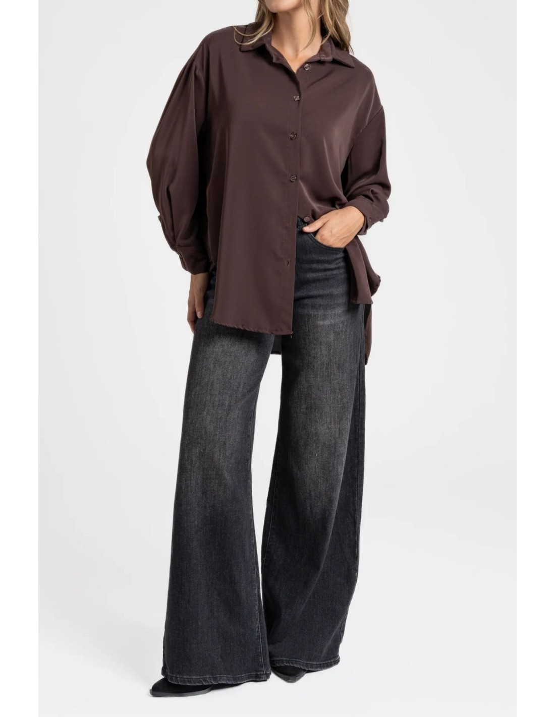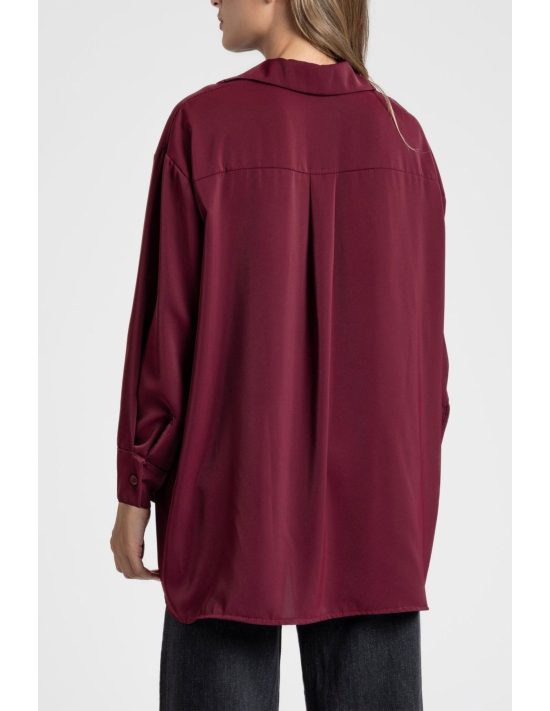 Tejido fluido. Diseño recto. Diseño amplio. Cuello solapa. Manga larga. Puños abotonados. Cierre de botones. Bajo redondeado