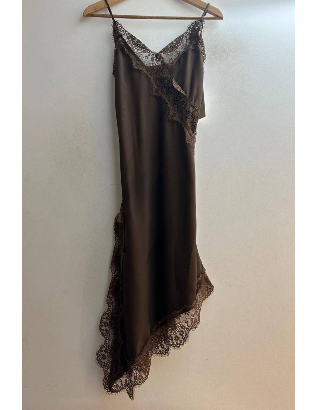 Blusa vestido lencera con puntillas y corte asimétrico.