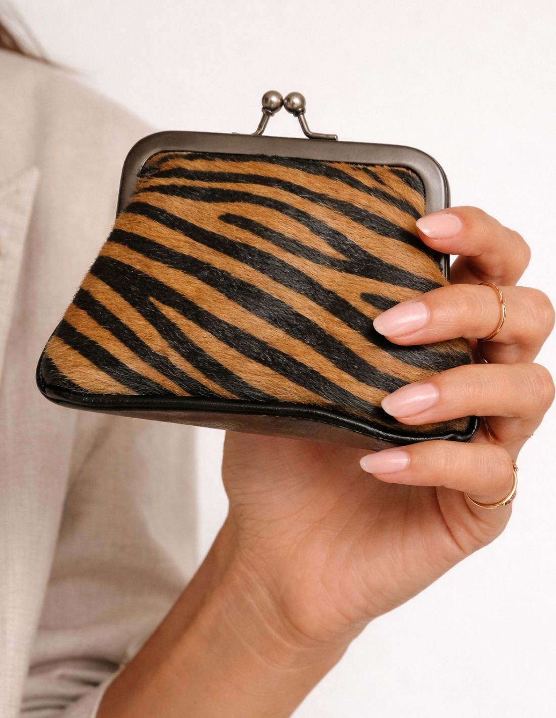 Monedero de piel con pelo y estampado animal print